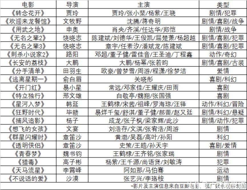 新一代已上桌的导演中,贾玲的反传销题材电影《转机花开》、文牧野的中东接触题材电影《宽容来龙餐馆》、申奥把柄境外东说念主质幸存者信得过经验改编的《用武之地》、饶晓志的《无名之辈2》《无名之辈3》、路阳的《刺杀演义家2》、大鹏的《长安的荔枝》、田羽生的爱情片《离婚清单》、俞白眉的笑剧片《逃离星期一》、易小星的笑剧片《开门红》、邢文雄的笑剧片《特立独行》、韩延的《银河入梦》、毕赣的《狂野时间》等都有成为热片的可能。
