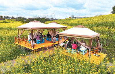 花田暖锅 重庆市梁平区荫平镇太平社区,游客们一边抚玩油菜花海,一边享用“花田暖锅”,体验别样的春天失业旅游。 刘 辉摄(东说念主民视觉)