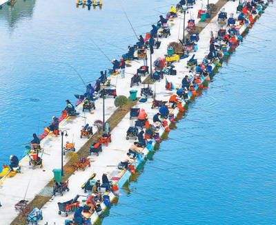 江西省抚州市金溪县琅琚镇枫山村的一处乡村垂纶基地,很多中老年垂纶可爱者在进行路亚钓、飞绳钓等专科化钓鱼竞技比赛。 朱海鹏摄(东说念主民视觉)