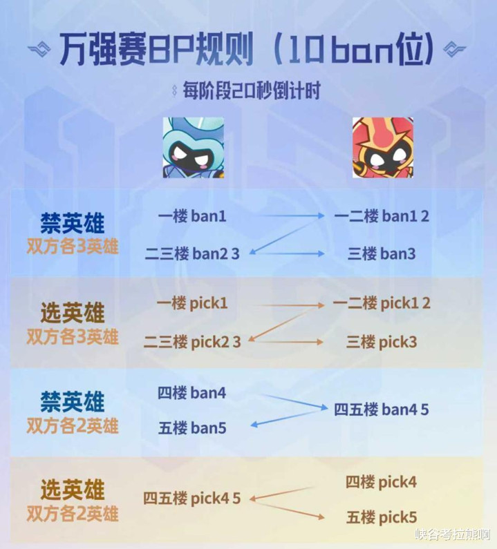 此外,官方还会为各巅峰分路名次前10000名的玩家,开启一个“巅峰万强赛”的顶级比赛模式,BP模式也会按照应事比赛的样式进行进行,即ban3选3,再ban2选2。具体上线时辰为2月2日。