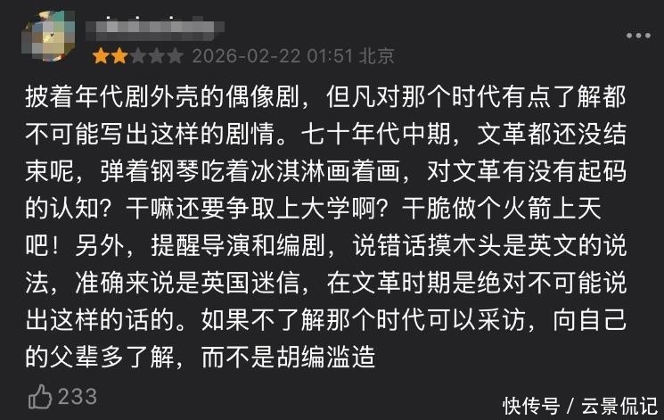 更有亲历过七十年代的中老年不雅众直指中枢:“这不是咱们挂念里的年代,这是编剧用滤镜编造出来的‘真空年代’。”