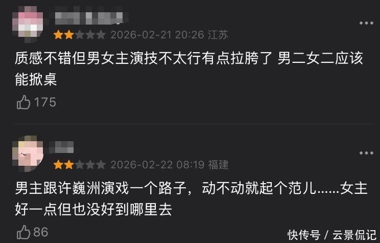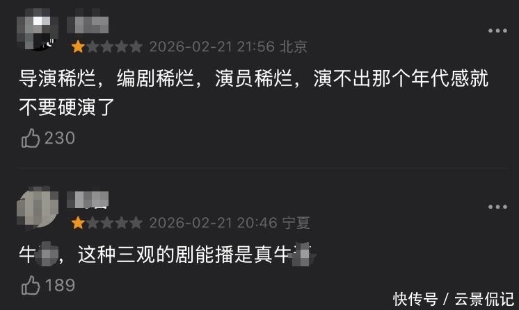 一部以塌实肌理与千里浸式饰演获得满屏热评,另一部则堕入收视攀升与口碑坍弛并存的怪圈,被大批不雅众直言“看得心累又出戏”。