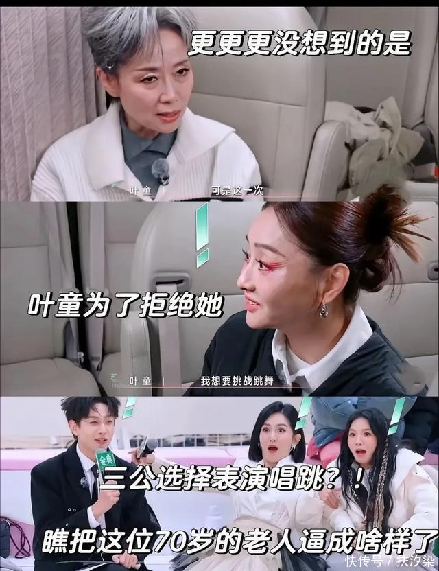 最同情的如故叶童,本来说想挑战唱跳节目,不外等于拒却陈德容的说辞,没预见径直现场直播,通盘东说念主都知说念她下个节目要挑战唱跳了。 网友配图“芒果群童欺我老无力,逼我唱跳,helpme”。