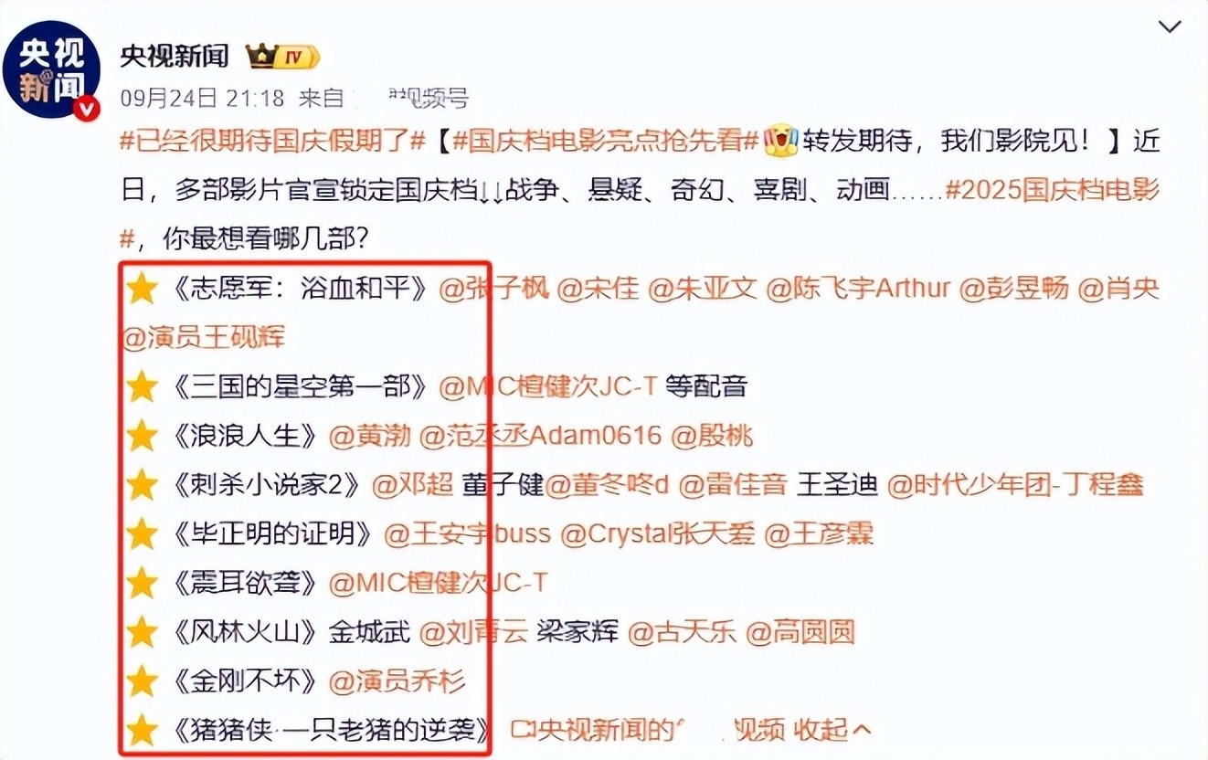 本年的国庆档可谓问鼎华夏,吵杂超卓。